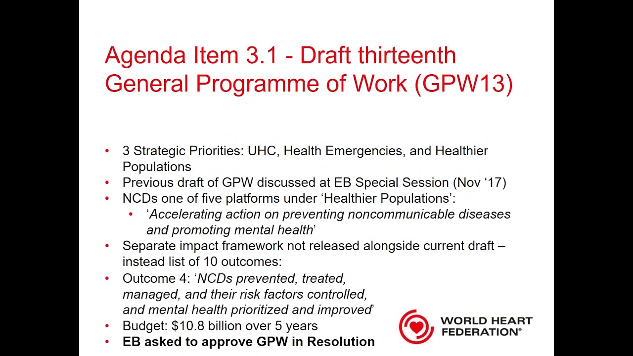 This webinar discusses changes to the organization of the EB, and key agenda items such as the WHO’s Draft Thirteenth General Programme of Work and the Third UN High-level Meeting on NCDs.