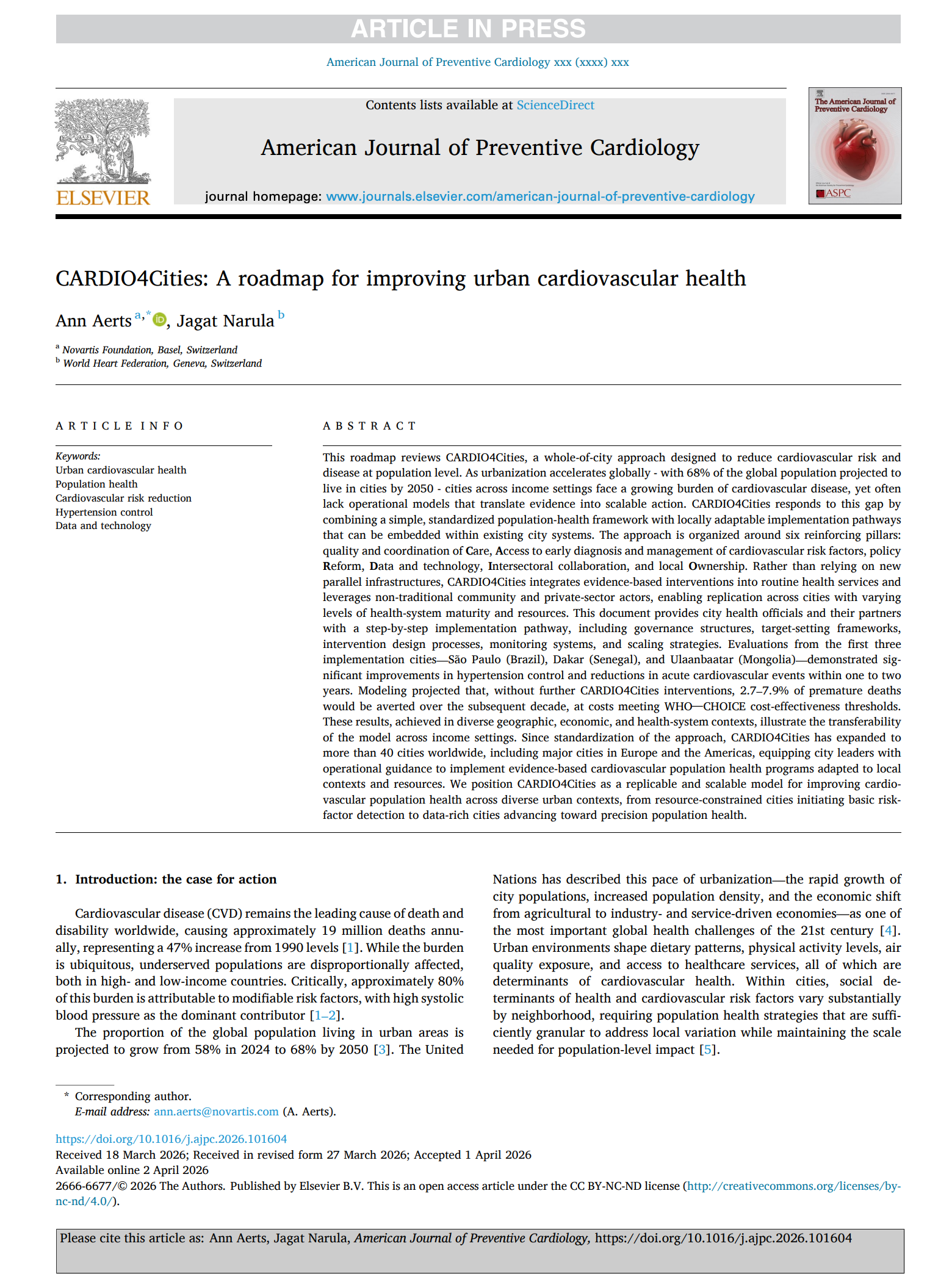 CARDIO4Cities: A roadmap for improving urban cardiovascular health