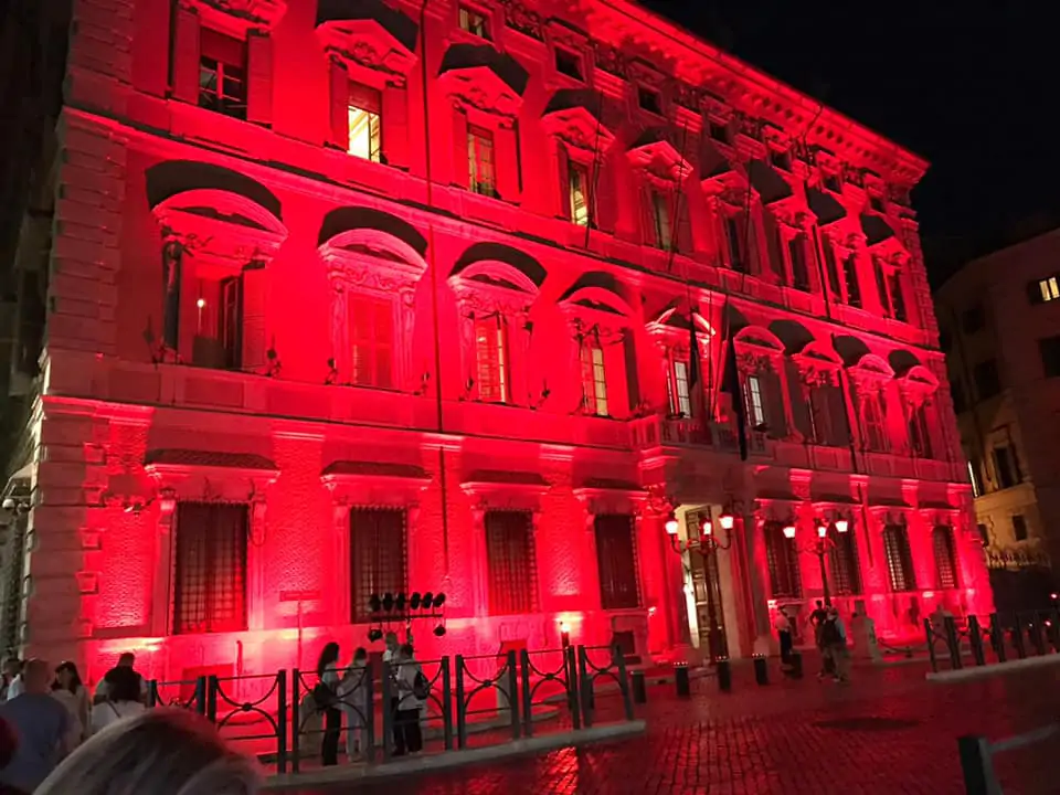THE SENATE OF THE ITALIAN REPUBLIC ILLUMINATED IN RED